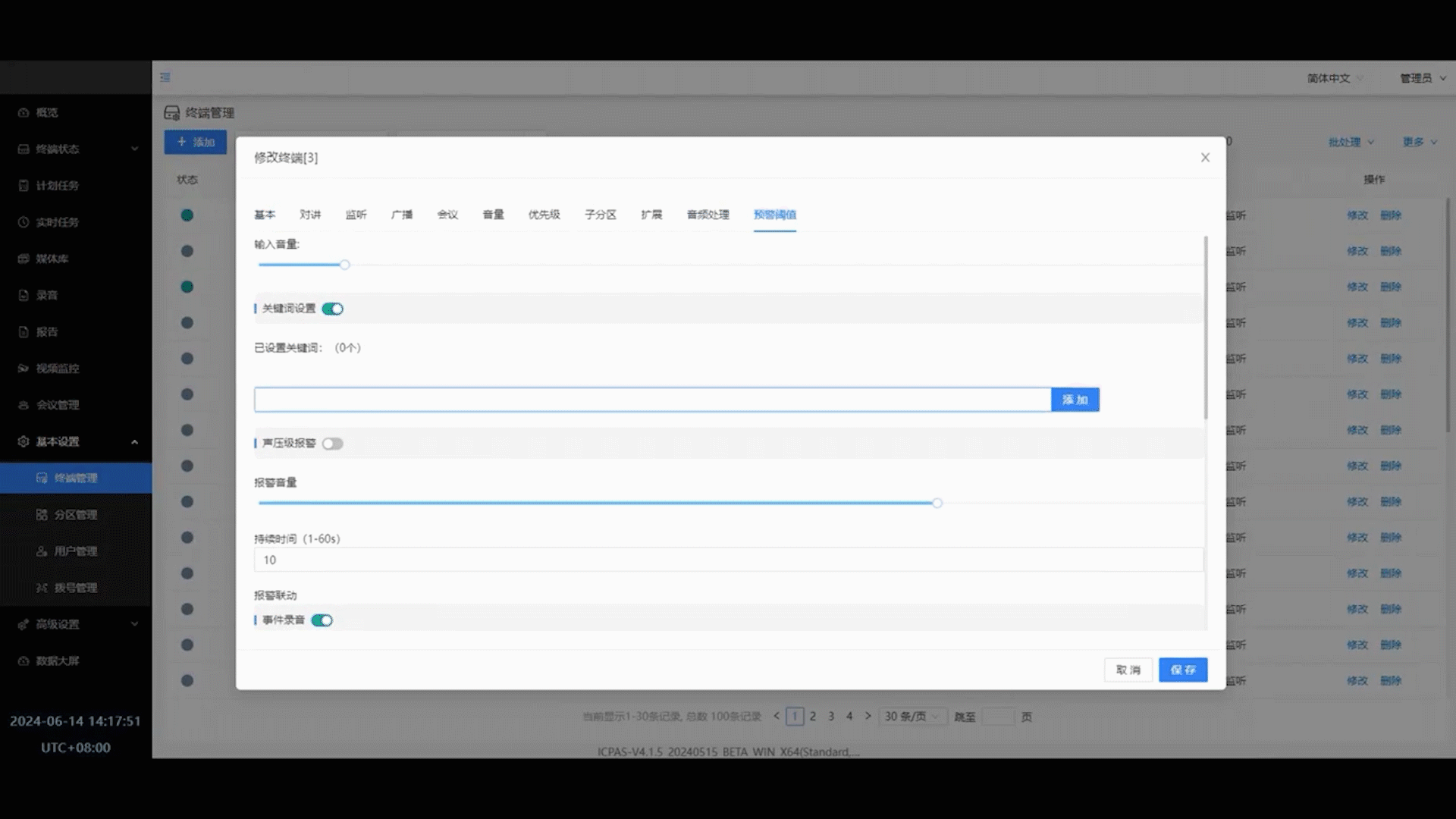 天地偉業(yè)防欺凌終端系統(tǒng)具備AI語音識別、廣播、對講等功能。在產(chǎn)品部署前可設(shè)置“救命”、“老師快來”、“別打我”等自由報警關(guān)鍵詞,當(dāng)防欺凌終端識別到關(guān)鍵詞之后便觸發(fā)報警,同時聯(lián)動高清攝像頭和對講主機,及時反饋給保衛(wèi)處或上級平臺,以最快的響應(yīng)速度揭開霸凌現(xiàn)場的“黑布”。除了可以關(guān)鍵詞識別,終端還支持聲強報警、打砸識別和一鍵求助。終端內(nèi)置A/D模塊,對環(huán)境聲音進(jìn)行智能分析,聲強過大或者現(xiàn)場出現(xiàn)打、砸聲音后,會及時報警,推送至平臺提醒老師。也可按下緊急按鈕呼叫監(jiān)控中心,進(jìn)行對講通話。