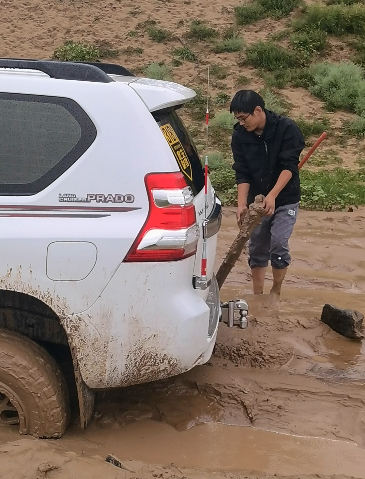 ↑ 前往現(xiàn)場(chǎng)途中汽車(chē)陷入泥潭