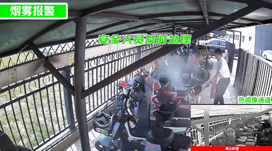 方案支持部署熱成像火點(diǎn)識別攝像機(jī),可對停放區(qū)域進(jìn)行全天候?qū)崟r(shí)監(jiān)測,精準(zhǔn)捕捉溫度異常、冒煙起火等火災(zāi)前兆。一旦觸發(fā)報(bào)警閾值,系統(tǒng)將立即啟動三重預(yù)警:現(xiàn)場響起語音播報(bào)、閃爍白光警示,并聯(lián)動報(bào)警器發(fā)出警報(bào);監(jiān)控平臺端的電子地圖快速定位報(bào)警點(diǎn)位,同時(shí)彈窗顯示現(xiàn)場實(shí)時(shí)視頻,方便工作人員第一時(shí)間掌握情況;管理人員的移動 APP 也會同步推送報(bào)警信息,確保通知無死角。不僅如此,工作人員還可通過遠(yuǎn)程操作,即時(shí)啟動干粉滅火裝置或水噴淋系統(tǒng),以秒級響應(yīng)速度快速控制火情蔓延,將火災(zāi)損失降至最低。